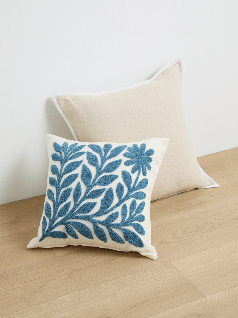 Introducing our Jet Home Citadel Blue Boucle Embroidered Cushion, measuring 50x50cm. Made of cotton, this cozy cushion adds a touch of elegance to any space.
