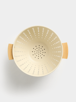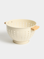 Upgrade your kitchen tools with our Jet Home cream colander featuring stylish wood handles and durable stainless steel construction.