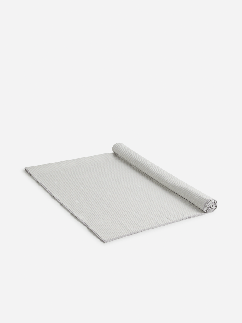 Enhance your bedroom with the Jet Home Grey Dot Stripe Quilt. This stylish quilt features a modern design with grey dots and stripes that will add a touch of elegance to your space.