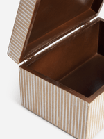 store your precious jewels in style with our Jet Home medium wash jewellery box. crafted from wood, this stylish box features a white wash finish for a modern look. with a spacious interior, you can easily organize all your favourite pieces. perfect for keeping your accessories safe and organized.