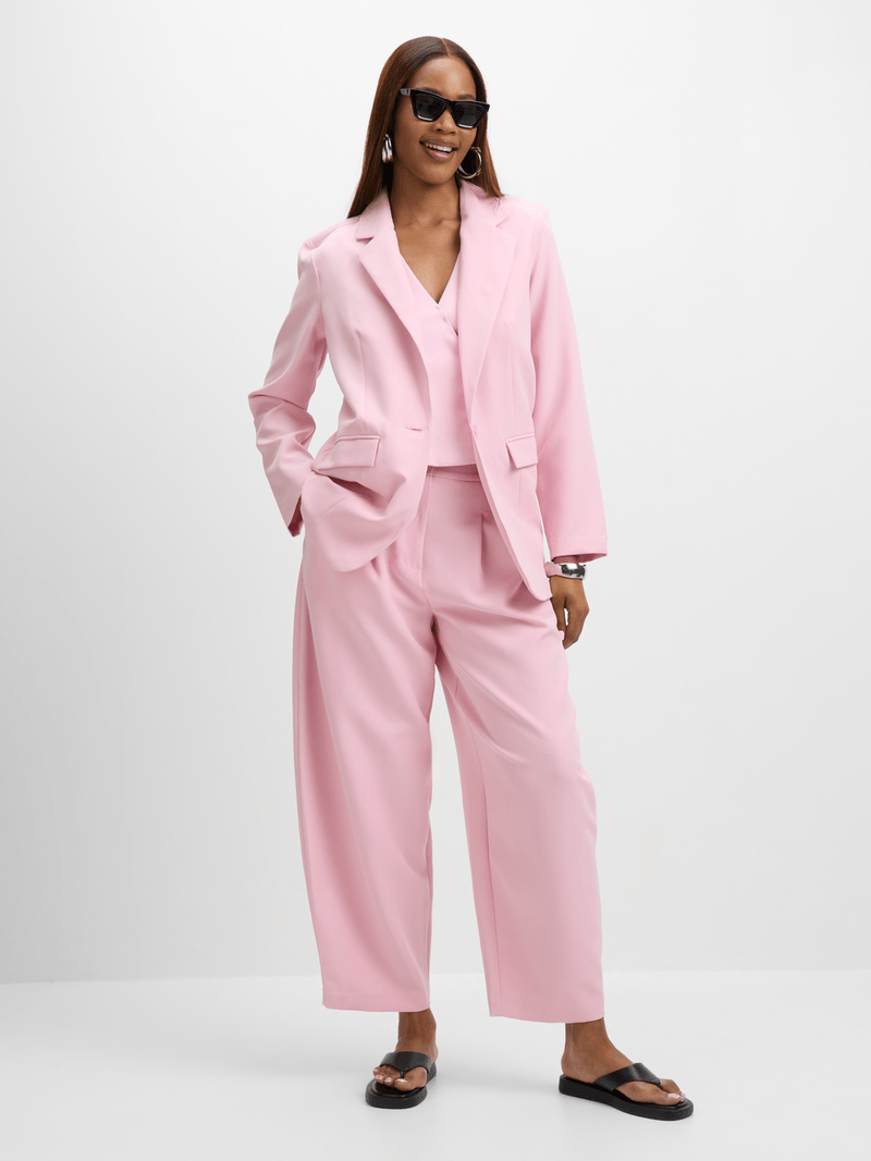 Get ready to elevate your wardrobe with our Jet Home Pink Barrel Leg Trouser. Made with 95% polyester and 5% spandex, these pants offer comfort and style all day long.