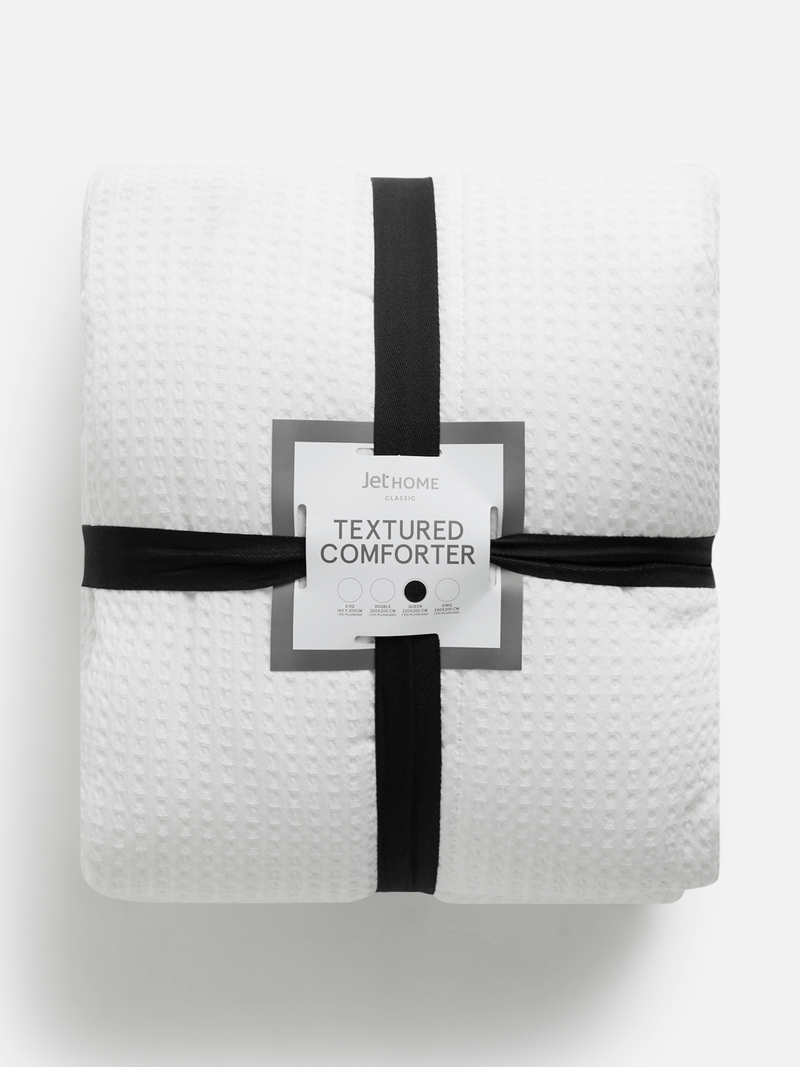 Introducing the Jet Home White Luca Tufted Comforter Queen - a luxurious addition to your bedroom. Made from soft and durable polyester material, this comforter is designed for ultimate comfort and style.