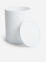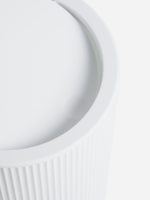Introducing the Jet Home Ribbed Bathroom Bin in sleek white. Made from durable ABS material, this 5.5L bin is perfect for any bathroom. With a stylish ribbed design, it adds a touch of elegance to your space. Enjoy the convenience of a compact size that fits in any corner.