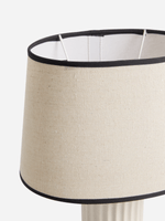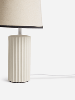 Add a stylish touch to any room with the Jet Home White Ribbed Lamp. This lamp features a modern ribbed base and a tapered shade for a sleek look. Made of ceramic, it is durable and easy to clean. Perfect for adding a warm glow to your space.