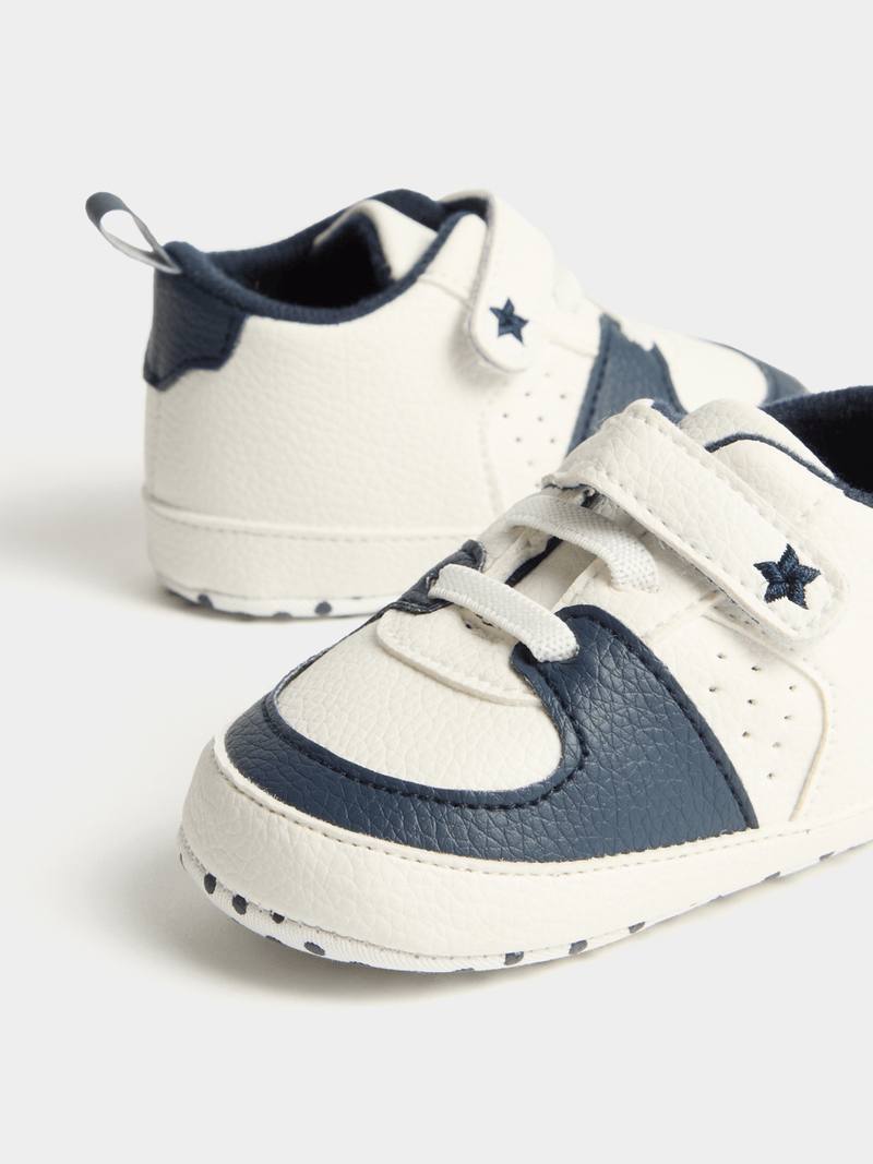 Introducing the Jet Infant Boys Navy and White Court Sneakers! These stylish sneakers feature a classic navy and white color combination, perfect for any outfit.