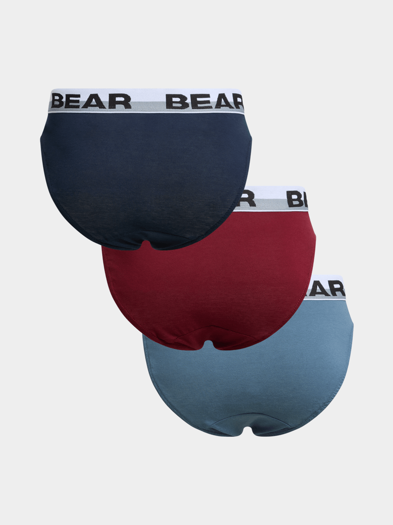 Get ready to elevate your underwear game with our Jet Men's 3 Pack Bear Merlot Indigo Ink Plain Mini Briefs. Crafted from a comfortable cotton lycra blend, these briefs offer a perfect fit for everyday wear.