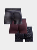 Enjoy comfort and style with our Jet Men's 3 Pack Navy Burgundy Ivory Geo Bodyshort. Made from soft cotton lycra, these bodyshorts offer the perfect blend of support and flexibility.