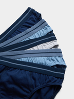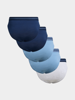 Get ready for ultimate comfort with the Jet Men's 5 Pack Blue And Navy Exposed Plain Brief. Made from single jersey material, these briefs offer a snug fit with exposed elastic for added style.