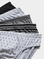 Comfortable, budget-friendly 5-pack of Jet Men's black and grey geometric print briefs. Made of soft, high-quality 100% cotton.
