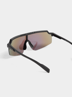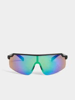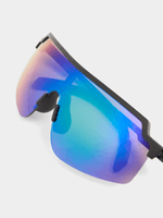 The Jet Black Half Rim Shield Blue Lens Sunglasses are designed for those who love sleek style and UV protection. Made of durable polycarbonate, these sunglasses are perfect for everyday wear.