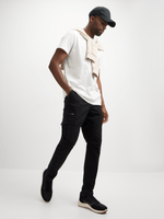 Introducing Jet's Black Straight Leg Cargo Pants, crafted with durable spandex material. These versatile pants feature a straight leg design and functional cargo pockets. Perfect for everyday wear, they offer a comfortable fit and are easy to style.