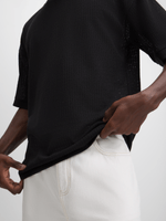 Introducing the Jet Black Textured T-Shirt, crafted for comfort and style. Made with high-quality polyester material, this tee is perfect for everyday wear. With a classic black color and textured design, it's versatile for any outfit. Stay cool and stylish with this must-have wardrobe essential.