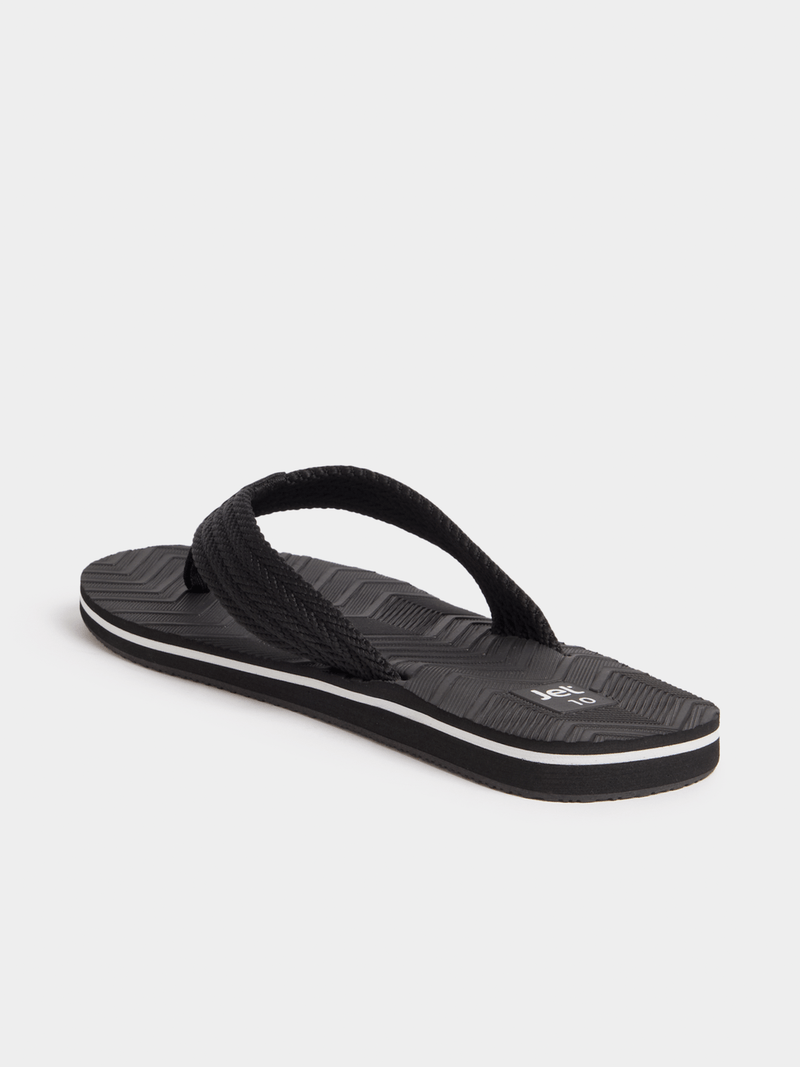 Introducing Jet Men's Black Webbing Flip Flops for ultimate summer comfort. This stylish footwear features durable webbing construction and a comfortable thong design. Perfect for all-day wear with a secure fit.