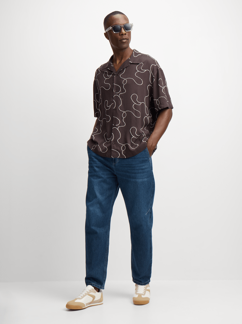 Introducing the Jet Men's Chocolate Squiggly Shirt, the perfect addition to your wardrobe. Made of high-quality polyester, this shirt is designed for comfort and style.