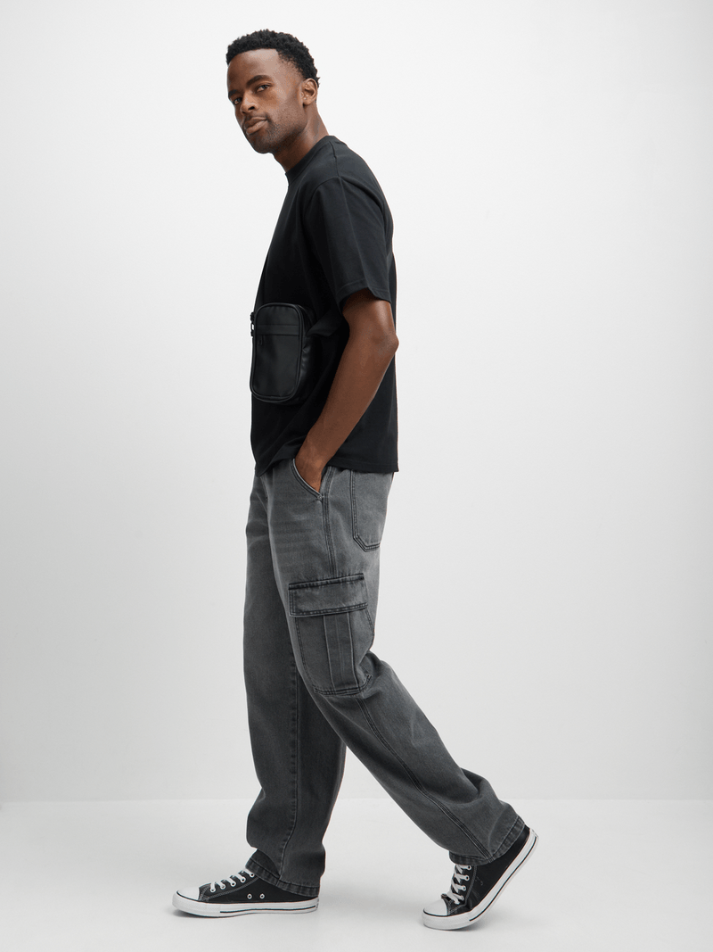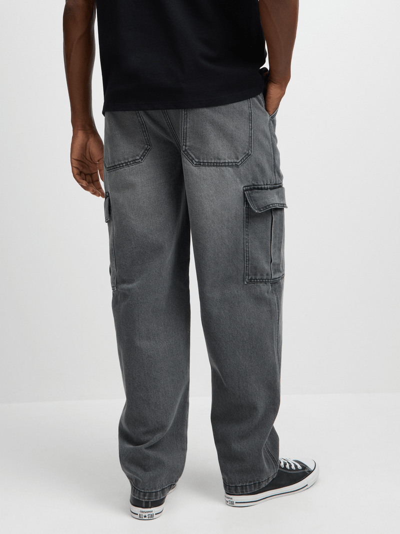 Introducing Jet's dark grey cargo denim for trendsetting individuals. Made from high-quality denim, these fashion-forward jeans are designed for comfort and style.