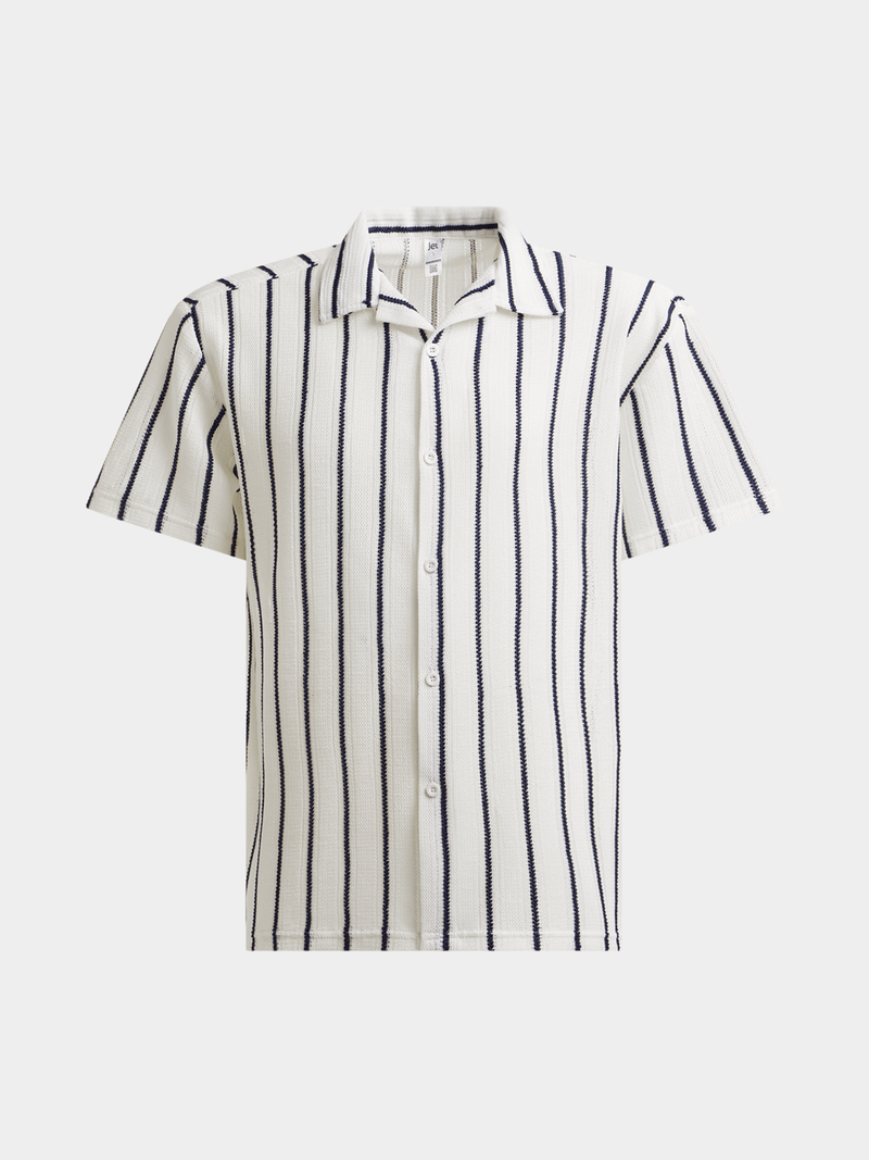 Introducing the Jet Ecru/Black Stripe Shirt, a versatile addition to your wardrobe. This knit shirt is perfect for any occasion, thanks to its classic design. Comfortable and stylish, it's the ideal choice for everyday wear. With a timeless striped pattern, this shirt is a must-have for your collection.