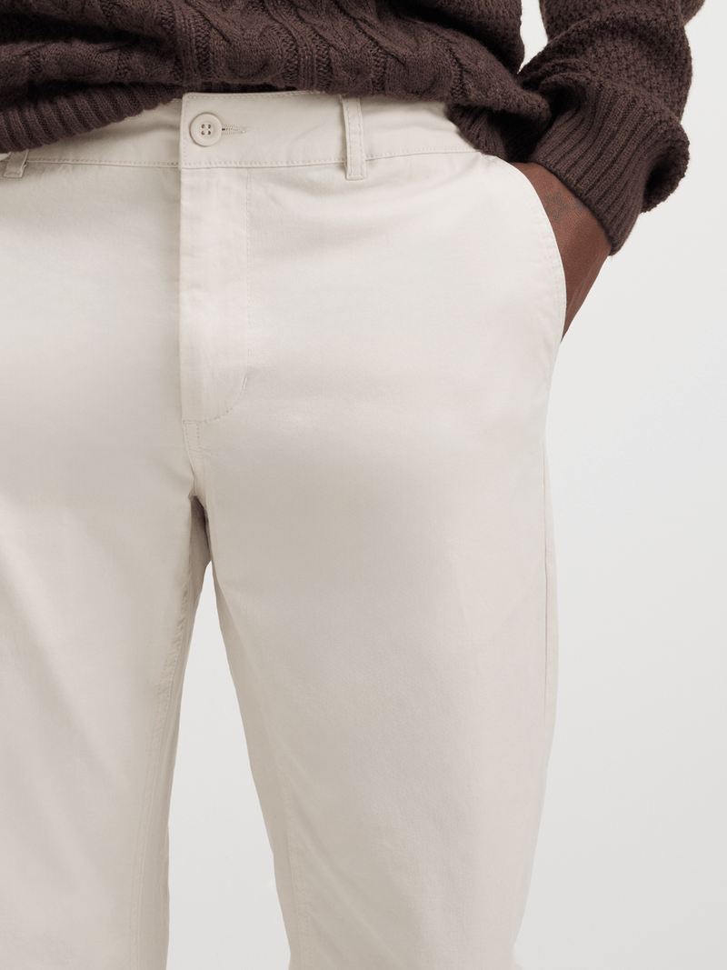 Upgrade your wardrobe with our versatile ecru chino trousers. Crafted with a sleek straight leg design, these pants are a timeless essential. Made from high-quality materials, these trousers are breathable and comfortable for all-day wear. Perfect for pairing with any top for a polished and fashionable look.