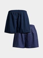 Get two pairs of stylish Navy Flower Boxer Shorts in this convenient pack. Made with high-quality materials for comfort and durability. Features a trendy design that adds a fun touch to your outfit. These boxers are great for everyday wear and are easy to care for.