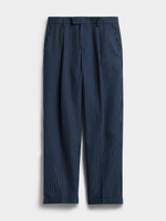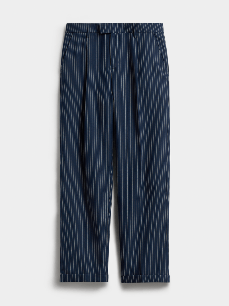 Elevate your wardrobe with these sleek navy pleated pinstripe trousers from Jet. Made from high-quality poly viscose, these trousers offer a comfortable fit and a stylish look. Perfect for any occasion, these trousers are versatile and easy to style.