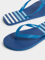 Step into summer with the Jet navy stripe flip flops. Made from durable EVA material, these stylish flops are perfect for all-day wear. With a comfortable design and trendy stripe pattern, these flip flops are a must-have for your casual wardrobe.