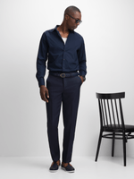 Elevate your style with our Jet navy textured trousers. Crafted from high-quality polyester, these trousers provide a comfortable fit and a sleek look. With a versatile design, they are perfect for any occasion. Stay fashionable and confident with these must-have trousers.