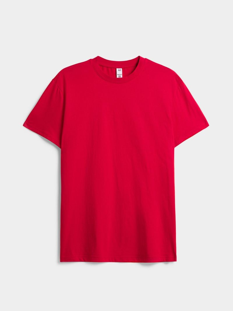 Stay stylish with the Jet Men's Red Tee Knit T-Shirt. Crafted from 100% cotton single jersey material, it ensures ultimate comfort.