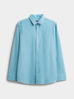 Introducing the Jet teal and white shirt, perfect for any occasion. Made with high-quality poplin material for a comfortable fit. Features fatigue dobby AOP LS design.