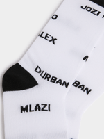 Jet's White/Black Cities Socks are designed for urban explorers. Made from a comfortable polyester blend, these ankle socks feature a stylish city skyline print in contrasting colors. Perfect for everyday wear, they are sure to add a touch of personality to any outfit.