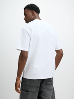 Introducing the Jet White Premium Cotton Boxy T-Shirt. Crafted from 100% cotton with a flat knit construction, this short-sleeved tee offers a fitted silhouette and features a classic crew neck.