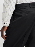 Stay sleek and stylish with the Jet Mens Black Pleated Trouser. Crafted from poly viscose, these trousers are perfect for any occasion. Elevate your wardrobe with these versatile trousers.