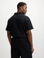 Introducing the Jet Men's Black Textured Short Sleeve Golfer. Elevate your casual style with this sleek and versatile piece. Made with high-quality materials for lasting comfort. Perfect for any occasion, this golfer collar set is a must-have for your wardrobe.