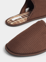 Step into comfort with Jet's Brown Waffle Core Slippers. Made with cozy fleece material, these slippers are perfect for lounging at home.