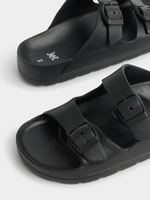 The Jet Older Boys Black Eva Sandal gives little feet the perfect summer look. Made from durable EVA material, these sandals offer comfort and style for all-day wear. Easy to slip on and off, they're ideal for active kids on the go. Perfect for any adventure!