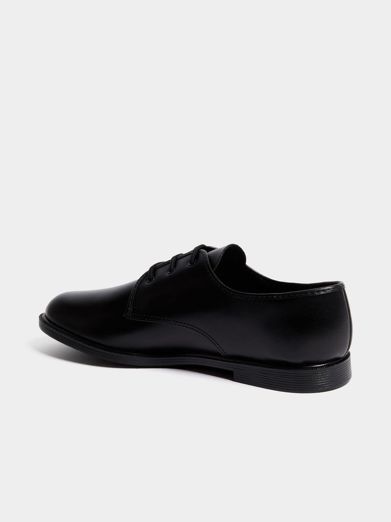Introducing the Jet Older Boys Black Synthetic School Shoes. Crafted from durable PU material, these flat shoes offer comfort and style for everyday wear. Make a statement at school with these versatile and reliable shoes. Suitable for all-day wear.