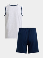 Get cozy in our Jet Older Boys Grey And Navy Palm Tree Short Pyjama Set. Made from soft cotton, this set features a stylish palm tree print. Perfect for lounging or bedtime, these comfy PJs are a must-have for your little one's wardrobe.