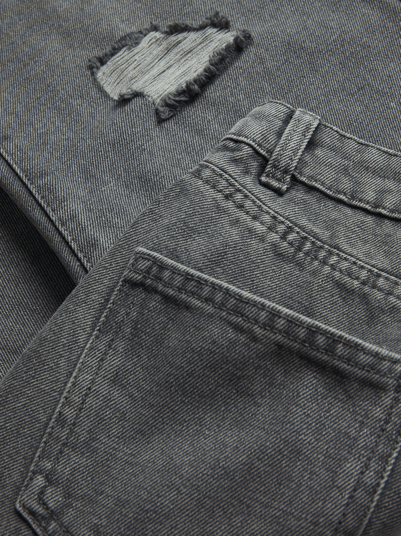 Introducing the Jet Older Boys Grey Ripped Denim Jean, a stylish and comfortable choice for everyday wear. Made from durable denim material, these jeans feature a trendy ripped design. Perfect for any casual occasion, these jeans offer a relaxed fit and are easy to mix and match with any outfit. Upgrade your little one's wardrobe with these versatile denim jeans.