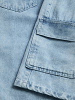 Introducing the Jet Older Boys Light Wash Pocket Jort! Made of durable denim material, these stylish shorts feature multiple pockets for all your essentials.