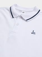 Introducing the Jet Older Boys White Core Golfer, made with premium cotton material. This stylish top features a timeless design that's perfect for any occasion. Upgrade your little one's wardrobe with this must-have piece.