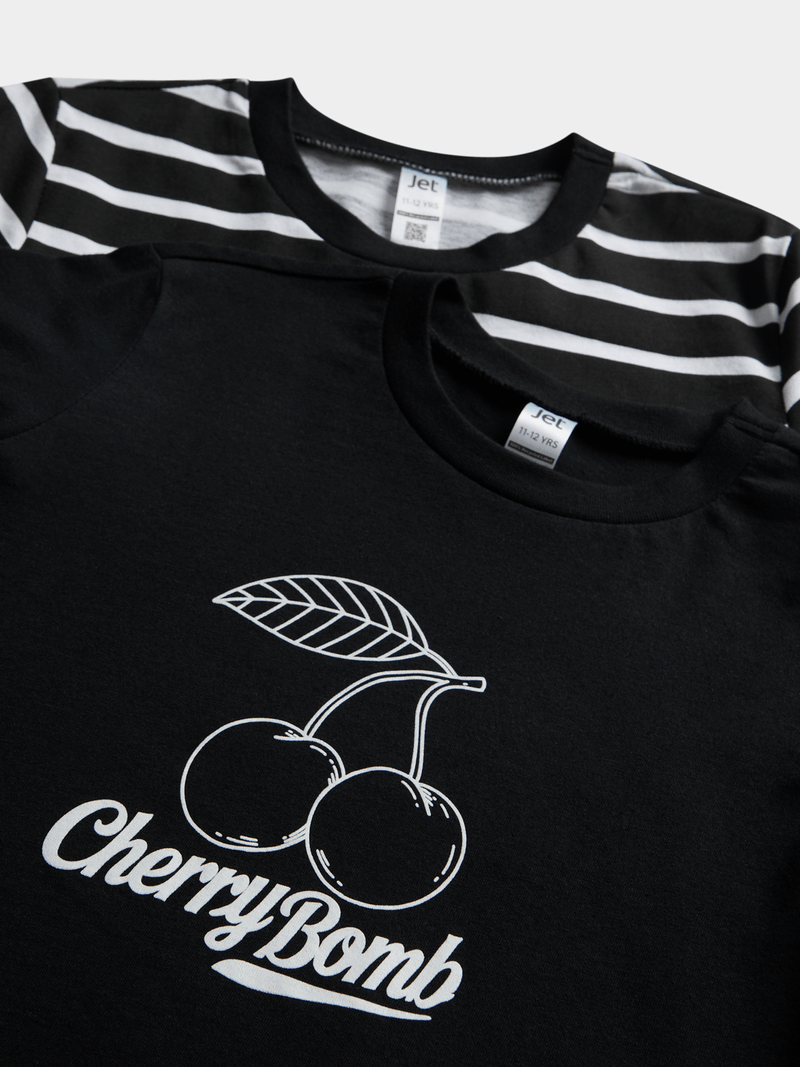Introducing the Jet Older Girls 2 Pack Black And Stripe Long Sleeve T-shirt! Made for comfort and style, this versatile set is perfect for everyday wear. Crafted with quality materials and designed with a trendy stripe pattern, it's a must-have addition to any wardrobe.