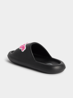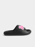 Step up your shoe game with these sleek black Barbie slides from Jet. Made with durable EVA material, these slides are perfect for everyday wear. With a comfortable fit and stylish Barbie design, you'll be turning heads wherever you go.