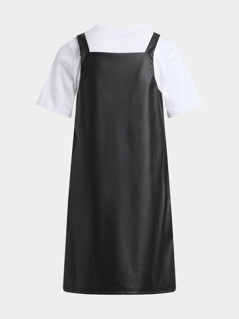 Introducing the Jet black PU dress for older girls! Made from high-quality polyurethane material, this dress is stylish and comfortable.