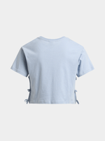 Jet Girls' Blue Stitch & Angel Bow Top is crafted from soft single jersey material. This charming top features delicate stitching details and a cute angel bow design.