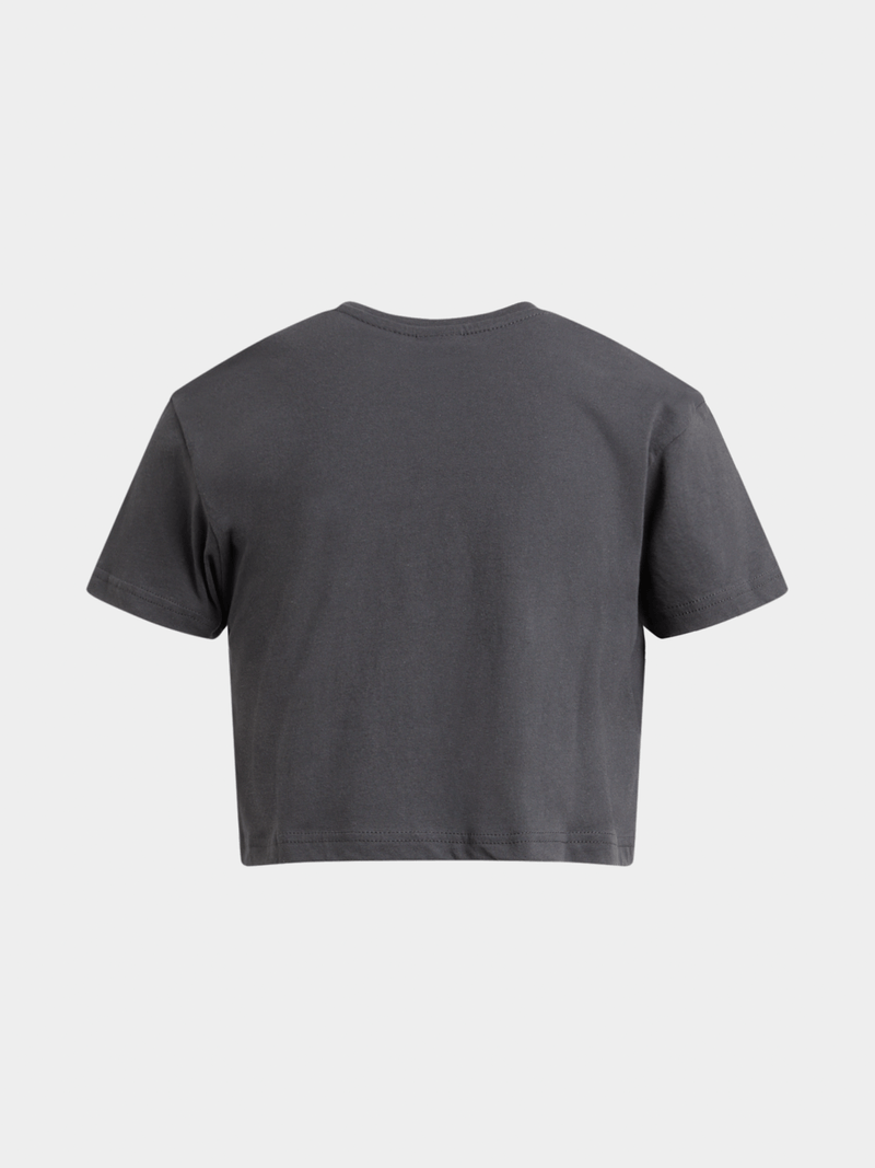 Stay cool and stylish with the Jet Charcoal Minnie Crop T-shirt. Made of comfortable single jersey material, this top is perfect for any casual outfit.