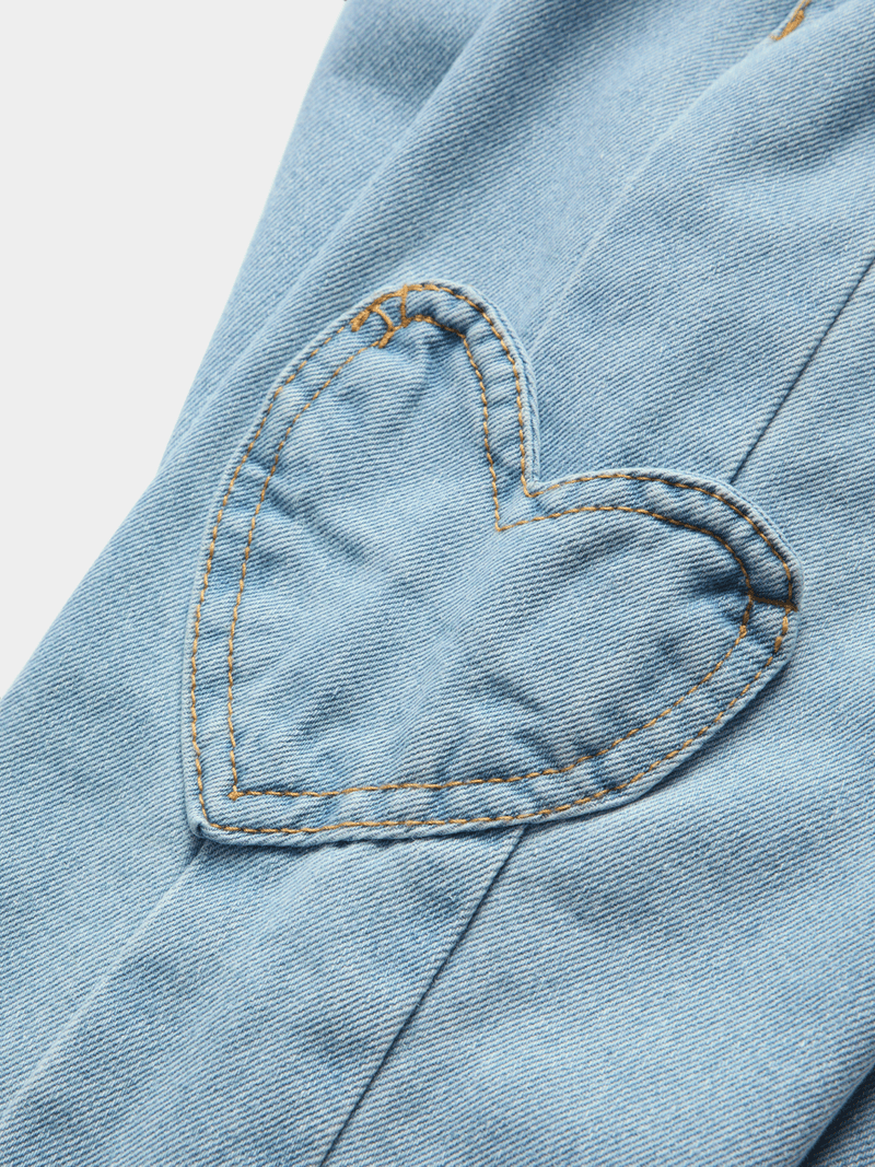 Get comfy in our trendy light blue denim pants with heart pocket detail. Made from high-quality denim, these pants are perfect for everyday wear.