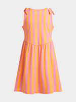 Our vibrant pink and orange stripe bow sleeve dress is perfect for any occasion. Made with comfortable cotton material, this dress is not only stylish but also easy to wear. Designed for older girls, it's a fun addition to any wardrobe.