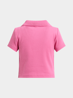 Meet the Jet older girls pink rib Johnny collar top, a versatile wardrobe essential! Made from cozy rib material, this top features a classic Johnny collar for a stylish touch.