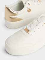 Step out in style with our Jet Older Girls White Charm Chunky Sneakers. These trendy kicks feature a sleek white design with gold accents, perfect for adding a touch of flair to any outfit.
