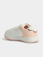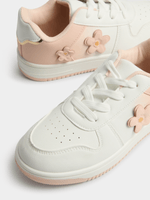 Step up your little one's sneaker game with the Jet White Pink Flower Court Sneaker. Featuring a fun floral design and durable polyurethane material, these sneakers are perfect for playtime.