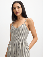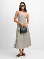 Elevate your summer style with our Jet Stone Black Stripe Seersucker Strappy Maxi Dress. Made with 86% Polyester and 14% Rayon, this dress is perfect for any occasion.
