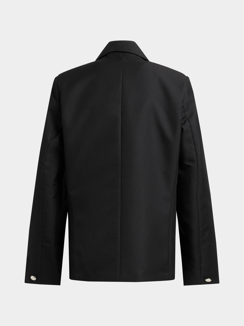 Look sharp and sophisticated in this Jet black blazer. Made from a durable poly viscose blend, this timeless piece is perfect for any occasion.